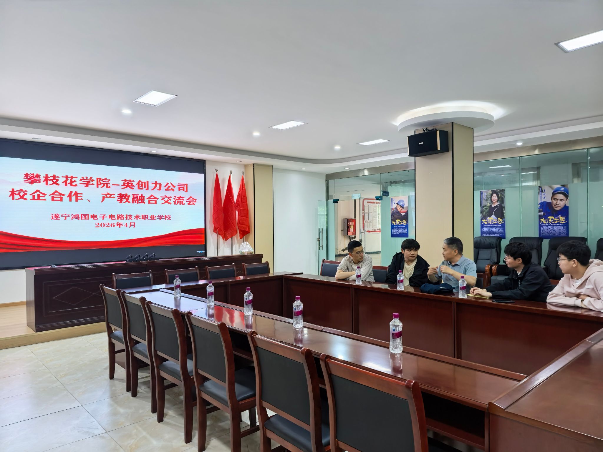 刘波涛董事详细介绍了英创力发展历程、主营业务布局、核心技术优势及未来人才招聘计划,秦明副校长深入介绍了鸿图职校与高校合作情况。
